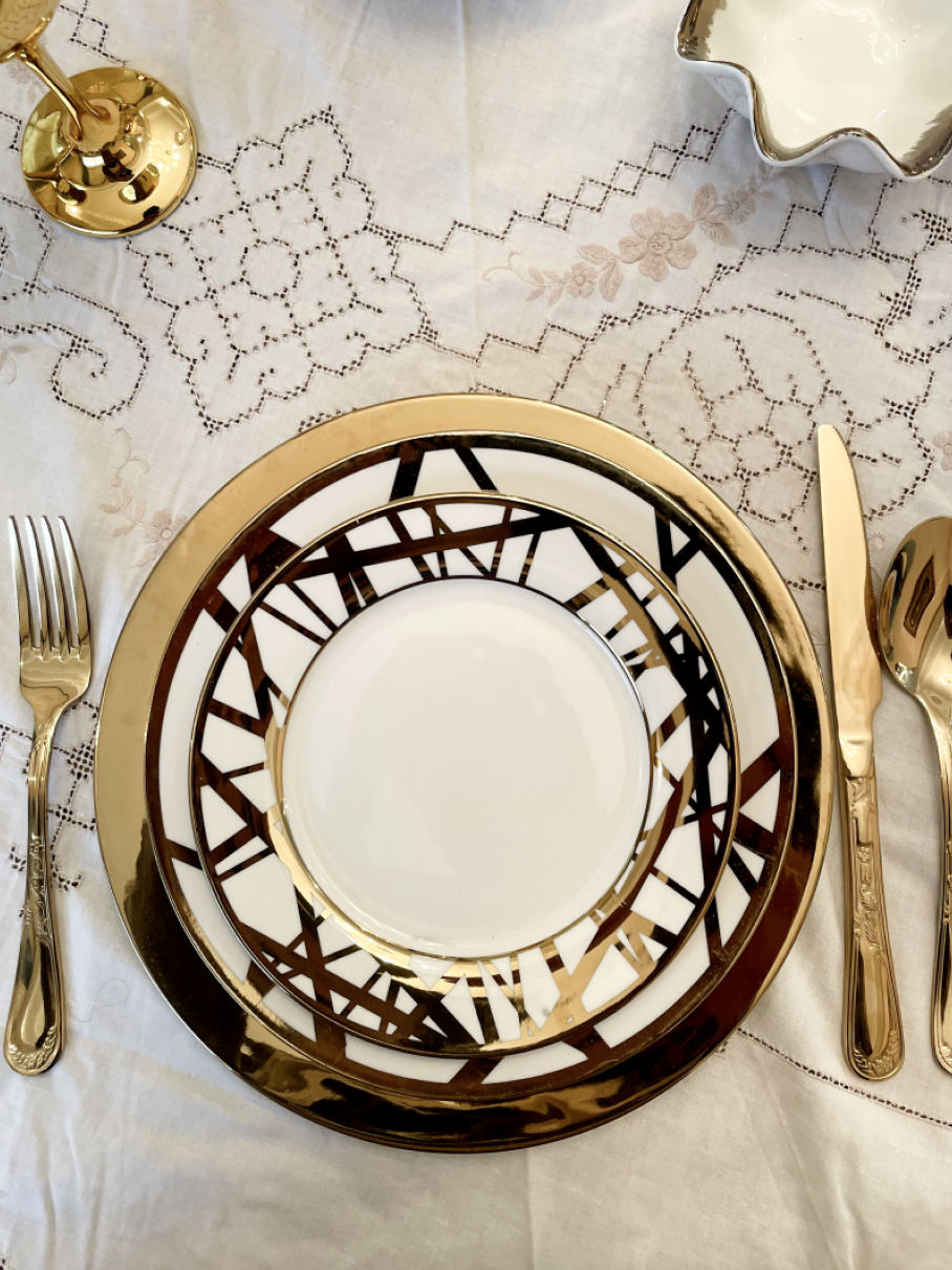 Ensemble de 36 Assiettes à Dîner Blanc et Or – Variation II